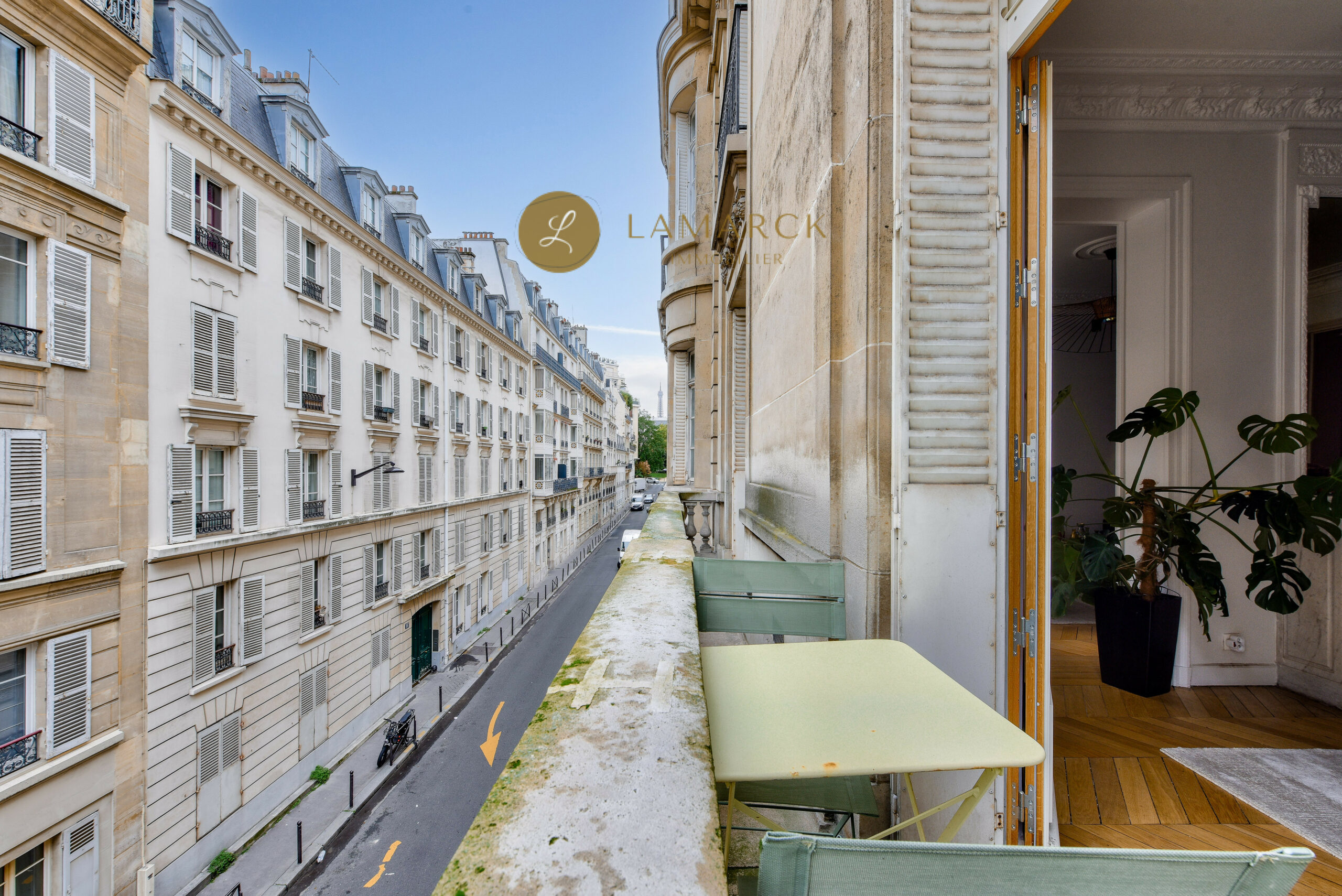 Il se compose d’une belle galerie d’entrée, une grande salle à manger avec une magnifique cuisine ouverte et son îlot central, un salon, tous les deux ouvrent sur un balcon en pierre bénéficiant d’une petite vue sur la Tour Eiffel.